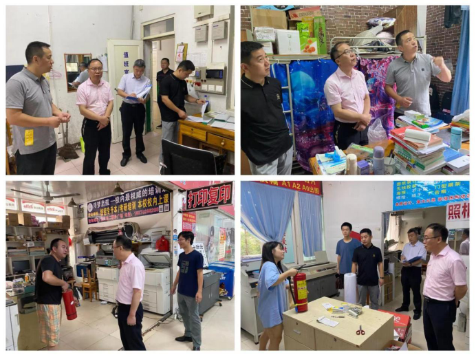 7月4日上午,在保卫处负责人的带领下,保卫处分组对学生宿舍、教学楼、实验室、食堂、图书馆、濂溪宾馆、校内部分商铺、办公楼等校内场所进行了全面细致的安全大检查。检查人员每到一处都详细了解暑期安全防范情况和防范措施,检查是否存在安全隐患,并根据实际情况提出意见和建议。