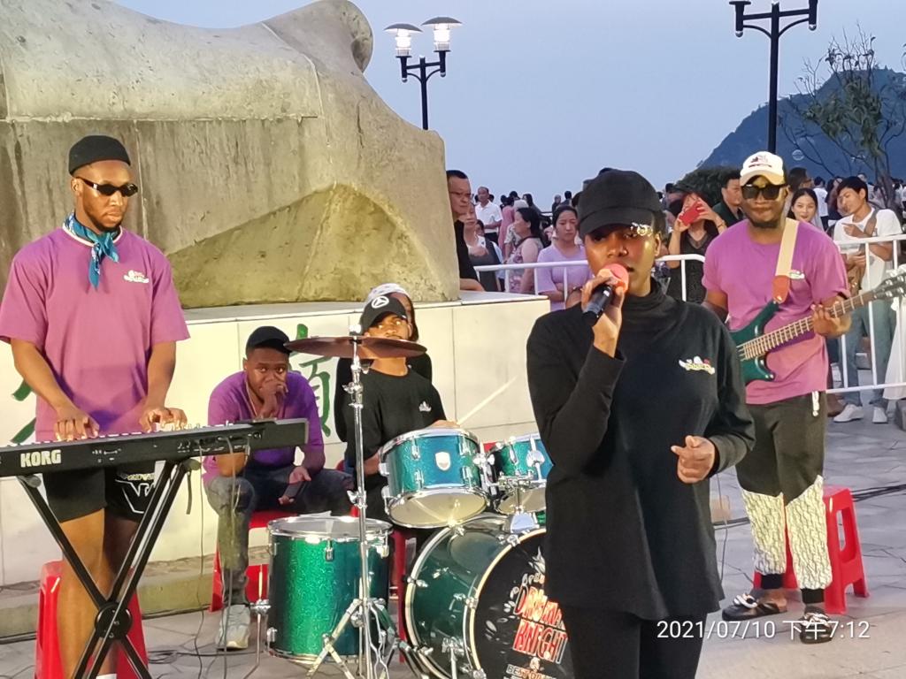 7月9日晚上,首场文化艺术表演志愿活动在庐山牯岭镇街心公园开演,中外学生欢聚一堂,共同奉献了精彩演出。永利yl23411集团官网派出的留学生志愿者服务队,演唱了“重温往日情怀”“月亮代表我的心”“朋友”和“我爱你中国”等十余首中外文流行歌曲和校园民谣。志愿演出活动受到现场观众的热烈欢迎,来自全国各地的游客把舞台围得水泄不通,现场气氛十分热烈,演员与观众频频互动,不少观众跃跃欲试,上台一展歌喉。