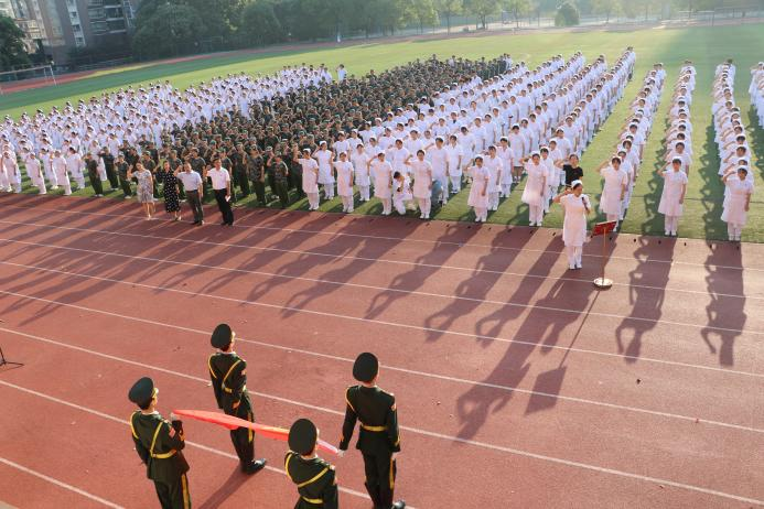 今年的9月18日是我国第21个全民国防教育日,9月18日清晨,永利yl23411集团官网护理学院在浔东田径场举行“勿忘国耻 强国有我”纪念“九·一八”事变90周年升国旗仪式暨全民国防教育日主题活动,以庄严神圣的方式铭记历史、缅怀先烈、赓续红色基因、播洒国防种子,践行“请党放心,强国有我”的青春誓言。护理学院党政领导和全院学生参加升旗仪式。