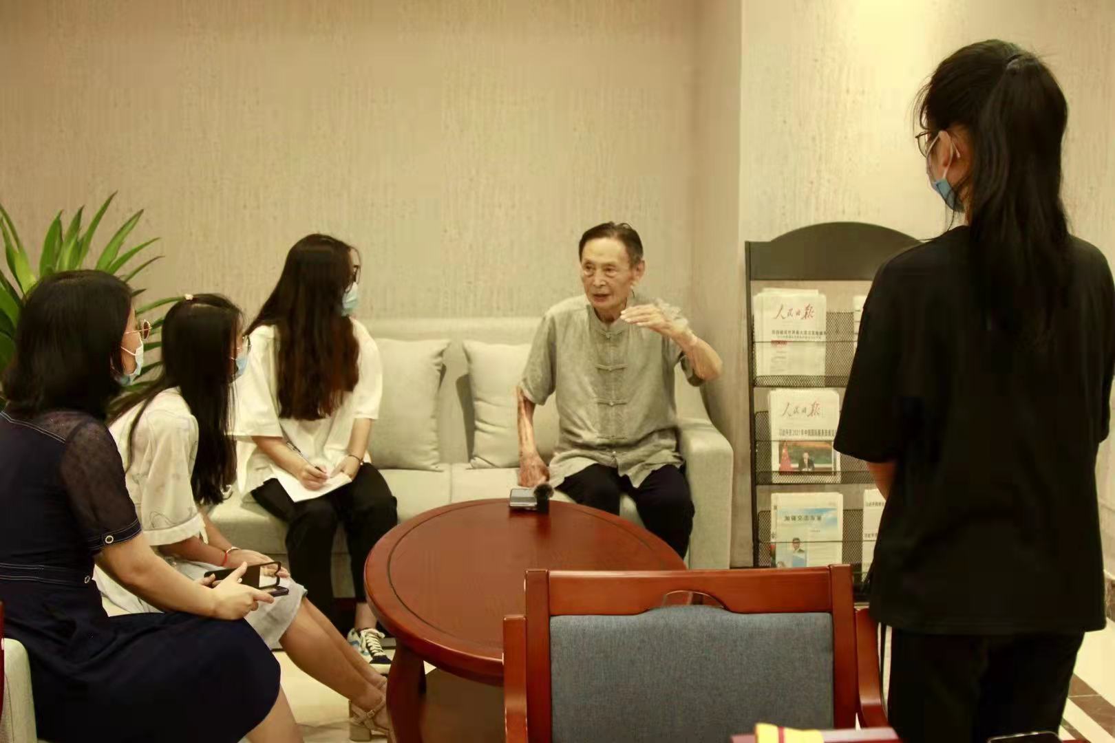 在访谈室里,“铭记英雄卓越功勋,弘扬时代千古风采”“德邦传承红色基因,钢铁筑牢英雄之魂”……桌面上摆放的各种功勋奖章,记录着江琳老人辉煌的革命历程。老人虽然年事已高,但讲起艰苦卓绝的战争岁月仍神采奕奕,一字一句铿锵有力。回顾参军时的艰辛,江琳老英雄仍然记忆犹新。“我十四岁参军入伍,但是我的个子在当时比较矮小,部队并没有要我。”讲到这儿,老英雄竟笑了起来。想起战争年代的艰苦岁月,又潸然泪下。“那个时候条件艰苦,吃不饱穿不暖,可是大家在一起有共同的理想信念,战友们团结一心。我们心里有一个念头,那就是一定要取得胜利!”“我并没有做过多大的贡献,也没有什么特殊的经历,也没有什么轰轰烈烈的战绩,我就是一个兵,我所做的都是作为一名普通战士应该做的。”这是江琳老英雄在接受采访时反复强调的一番话。这些谦虚的话语充分体现了共产党人为国为民,不忘初心的本质,英雄们在平凡琐碎中坚守,在生死抉择前忘我,只是因为让人民幸福,让祖国富强是他们最质朴的心愿,所以才觉得自己的付出十分微小,这些话语让采访的师生们深受感动。