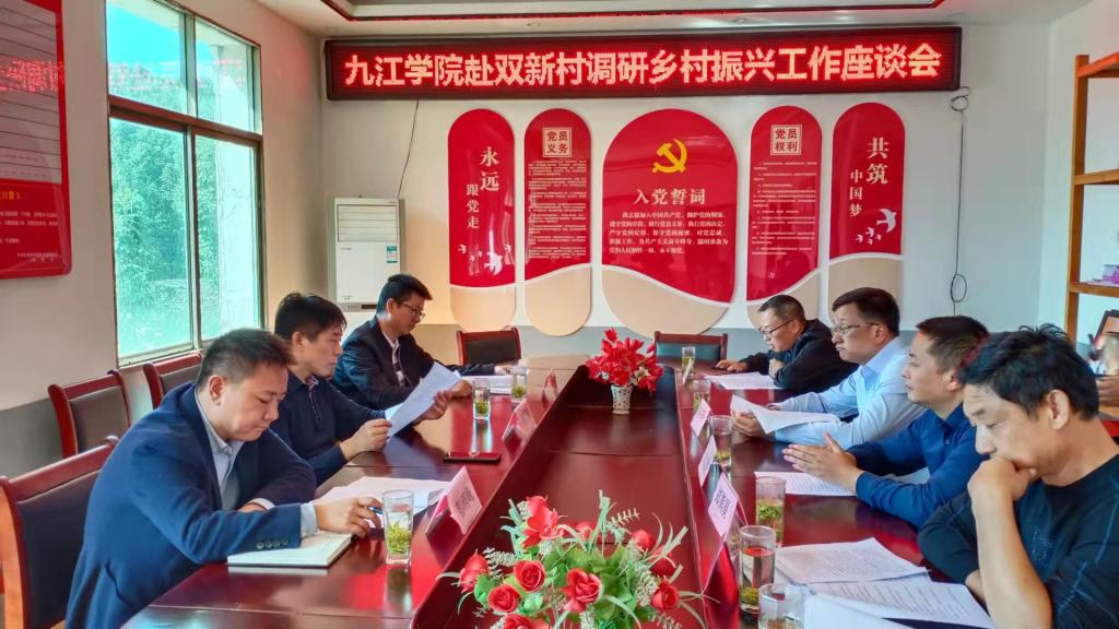 为督促学校驻村工作队落实好党中央关于乡村振兴的重大决策部署,10月12日,校党委委员、校纪委书记李广欣赴武宁县鲁溪镇双新村调研乡村振兴工作,召开调研座谈会,进行现场考察,对学校驻村工作队提出要求。武宁县委副书记刘名寿、鲁溪镇党委书记肖龙雨等参加调研。