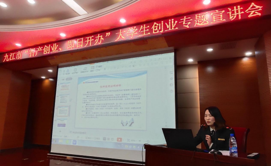 为贯彻落实国家和省市双创周活动要求,10月20日,九江市“智产创业、即日开办”大学生创业专题宣讲会在永利yl23411集团官网逸夫图书馆报告厅举行。国家科技成果鉴定委员会委员、省工信厅和知识产权局入库专家胡春华来校作报告。副校长陈春生和九江市市场监督管理局党组成员徐文出席会议并致辞。