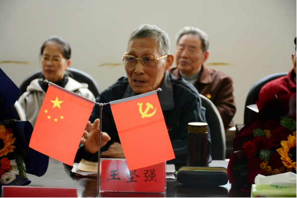 长期从事学校基建后勤工作的老党员王坚强,回忆起八十年代学校打井取水、黄土坡上建校舍的往事,不禁感叹学校建设发展的速度和成就,感恩当下老年生活的幸福,表达了对党和国家以及学校的未来充满信心并送上祝福。
