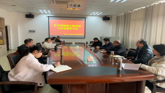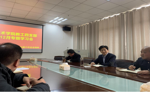 12月8日下午,艺术学院教工第四党支部学习会在艺术楼西314室召开,专题学习党的十九届六中会精神。校党委委员、副校长查振华出席并指导。