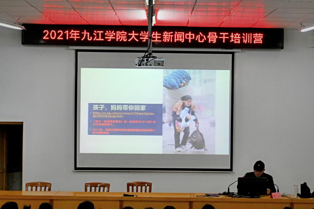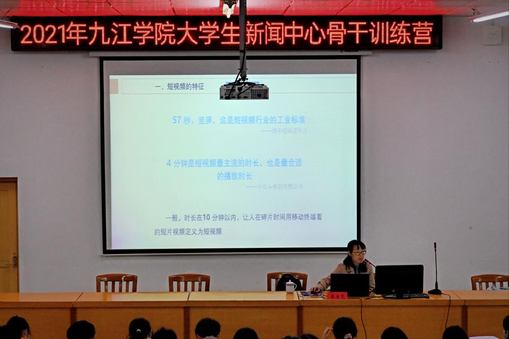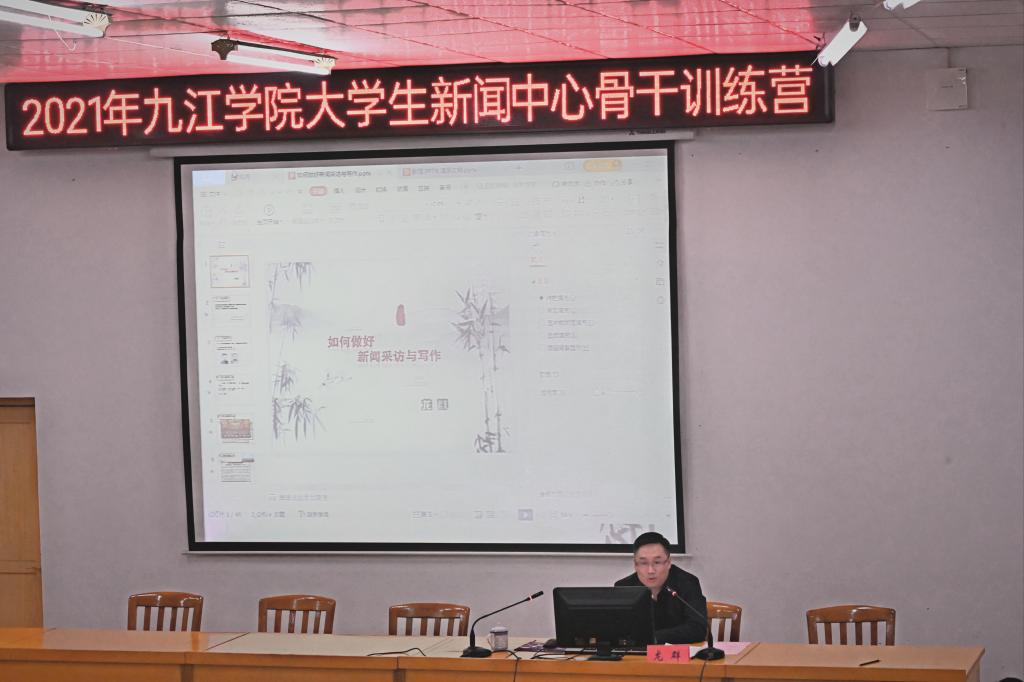 为期六天的培训活动中,党委宣传部特邀了校内外媒体专家给学生作指导,九江日报社党组成员、副总编、高级记者龙群,江西省摄影协会副主席、九江市摄影协会主席、九江日报副总编宋小勇,学校信息技术中心张生花副教授,新浪江西营销中心总监任彦斌,校文传学院播音教研室主任王苓副教授,《九江学院报》原编辑部主任、江西省高等学校校报研究会常务理事李龙老师分别进行了现场授课。课程内容十分丰富,涉及新闻采访与写作、摄影理论与实践、视频拍摄制作、新媒体运营技术方法、播音主持等内容。