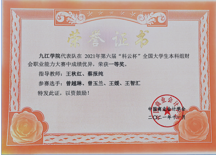 为“打通就业最后一公里”,由中国商业会计学会主办、厦门科云信息科技有限公司承办的2021年第六届“科云杯”全国大学生本科组财会职业能力大赛在云端举行,大赛吸引了超300所院校,近600支队伍激烈角逐。永利yl23411集团官网管理学院派出的学生团队在比赛中表现出色,获得了一项全国一等奖和一项全国二等奖。