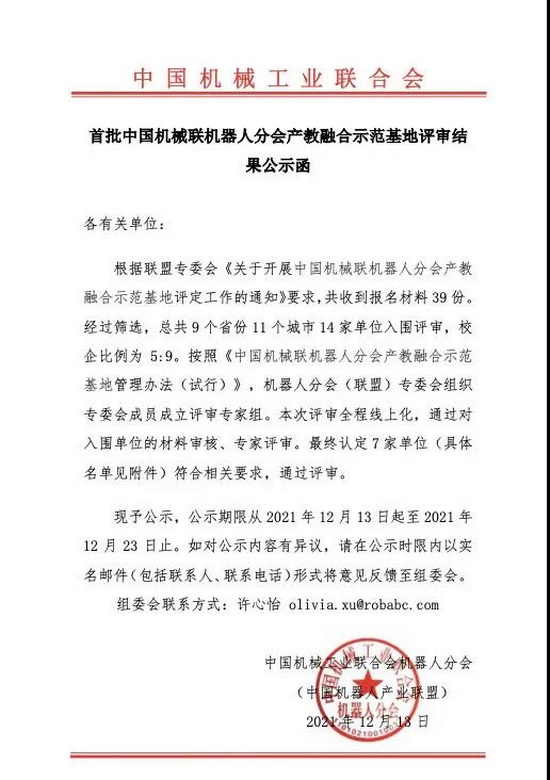 近日,首批中国机械工业联合会机器人分会产教融合示范基地评审结果公示,永利yl23411集团官网机械与智能制造学院成功入选全国首批产教融合示范基地。