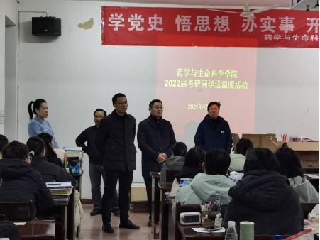 在2022年硕士研究生入学考试临近之际,为鼓舞考研士气,传递温暖力量,帮助考研学子坚定目标、调整心态、树立信心,药生学院组织开展了“情系考研生,寒冬送温暖”系列活动,为他们送上了温暖的问候与亲切的祝福,并通过多种形式助力考研学子青春逐梦。