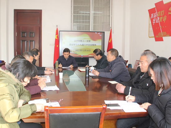 12月30日上午,校党委副书记魏立平到所联系的法学院教工一支部,与支部党员共同参加“贯彻党的十九届六中全会精神”支部专题学习活动。学习活动由法学院教工一支部书记陈杰主持。