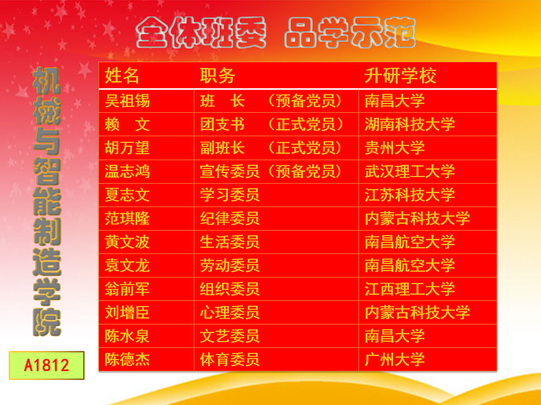 A1812班全体班委 品学示范