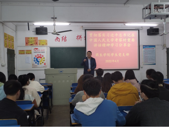 在青春的赛道上奋力奔跑,红色经典固根本。4月29日,药生学院学生党支部组织召开了贯彻落实习近平总书记在中国人民大学考察时重要讲话精神学习分享会,参加分享会的学生们表示深受鼓舞,大家表示,要以“党旗红”为主色,将个人发展紧紧融入党和国家发展的浪潮中。