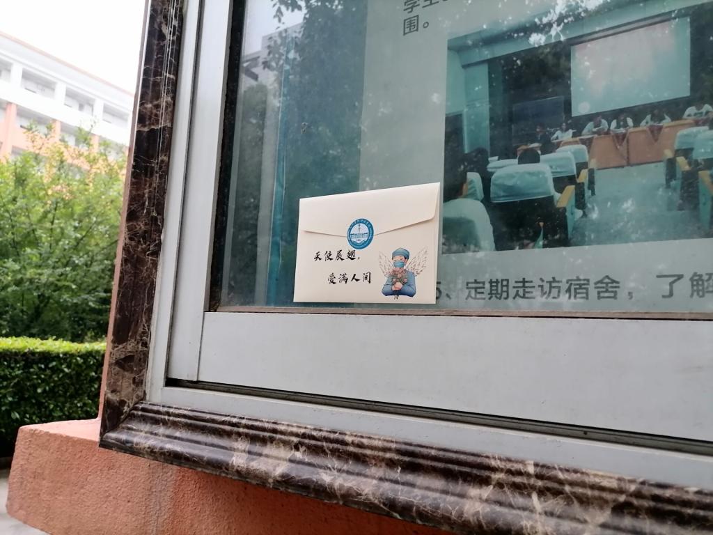 春风化雨,以心点灯。清晨,同学们拿着一叠精心准备的信封出现在教师办公楼内,将信封细心地贴在显眼的位置。一封封信封内,装载着对白衣天使们的感谢、生活的祝福,以及对未来的期待。随后,他们把这些祝福同样分发到了校园的各个角落,为同学们打气鼓劲,与生活中的美好不期而遇。