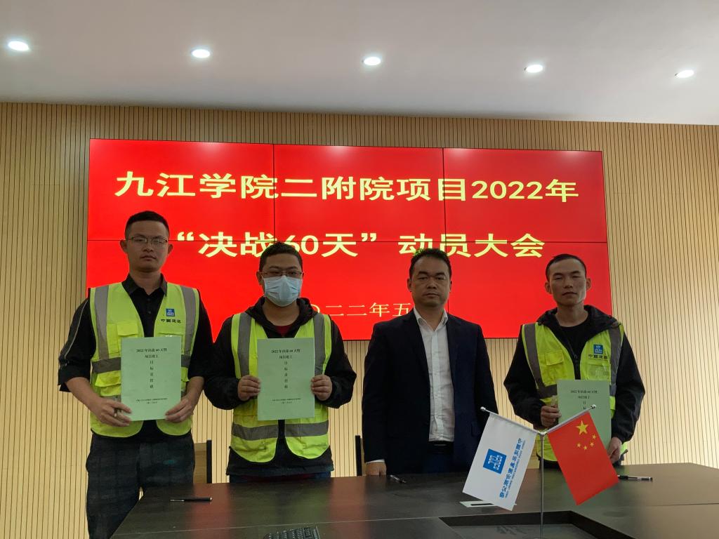 目前,九江学院第二附属医院建设项目正处于建设的关键期。5月20日下午,第二附属医院项目建设指挥部召开“决战60天”动员大会,施工方有关代表签署了项目建设目标责任状。副校长杨耀防、项目指挥部相关工作人员、中建三局江西分公司负责人及各施工分包单位相关人员参加了动员大会。5月20日上午,校党委委员、纪委书记李广欣对项目建设及医院筹建情况实行了每周调度。