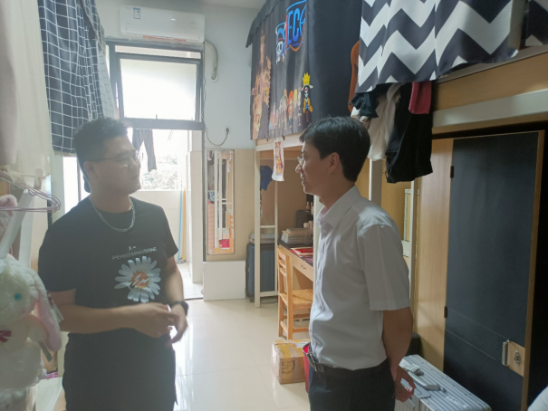 座谈会结束后,查振华和艺术学院党政领导分别走访了1栋410(视传专业A1872班)、420(服装服饰专业A1861班)、421(舞蹈学专业A1832班)学生宿舍,与学生亲切交谈,并一一询问他们大学四年的收获与感受、就业情况、毕业之后的职业规划……细致入微的关怀,让在场的每一位毕业生倍感爱意和温暖。