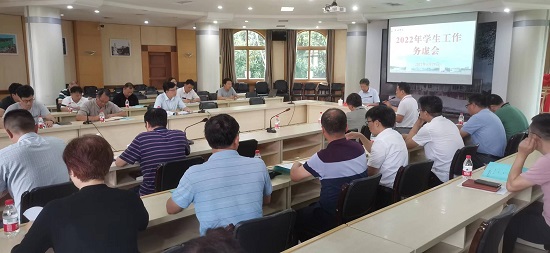 6月29日下午,学校2022年学生工作务虚会在行政楼一号会议室召开。副校长严平、学生处、学生资助管理中心负责人、各二级学院党委副书记参加了讨论。