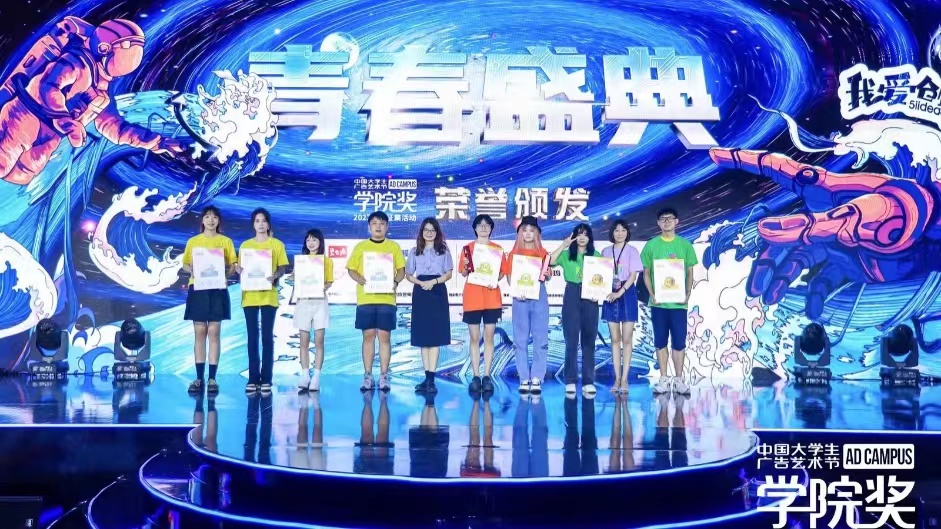 近日,2022年中国大学生广告艺术节学院奖春季赛青春盛典颁奖典礼在天津举行,永利yl23411集团官网获奖师生团队代表参加了颁奖典礼。据了解,永利yl23411集团官网学子在本次大赛中的获奖等级和获奖数量为永利yl23411集团官网参加大广节学院奖以来的最好成绩,其中文学院教师耿帅及学生团队(王懿哲、叶乔艳、袁宝怡、靳转芙、李泯霖、唐格威)的作品《冰泉,让你自信出发》获等级奖银奖1项;文学院教师夏勤喜及学生团队(郑珏玲、魏潮君)的作品《妈妈的好帮手》获得企业专项奖2等奖1项。由于本次比赛中永利yl23411集团官网文学院取得了优异成绩,学院奖组委会还授予文学院“产教融合实践基地”称号。
