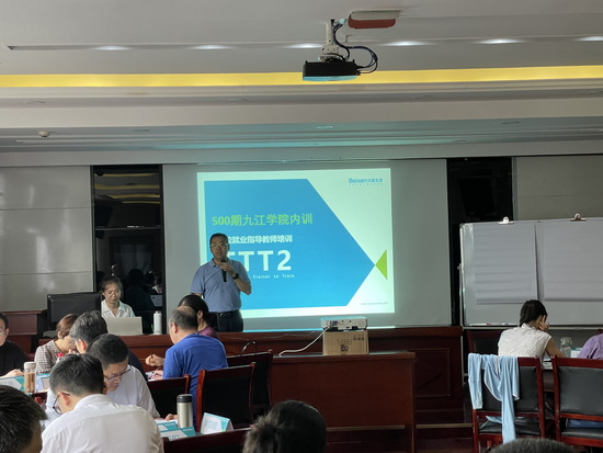 新学期伊始,在《就业指导》课程开课之前,8月27日至29日,学校在濂溪宾馆开办了为期三天的高校就业指导教师培训班。全校承担就业指导课程的任课教师及就业工作专职辅导员共56位老师参加了培训。此次培训课程邀请了北森生涯(北京)教育科技有限公司资深讲师文婧讲授。