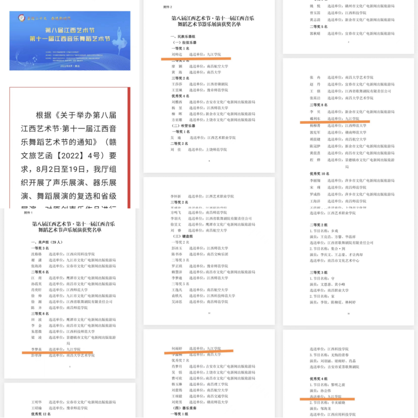 近日,在第八届江西艺术节-第十一届江西音乐舞蹈节获奖结果的公示中获悉,永利yl23411集团官网参赛的青年教师获得佳绩。其中,刘帅达荣获民族乐器组拉弦乐器一等奖(第1名),何雨婷获西洋乐器键盘组三等奖(第9名),戴利东获民族声乐组三等奖(第10名),李梦真获美声组三等奖(第14名),孙公伟获单双三人组优秀奖(第7名,单人舞第2名)。