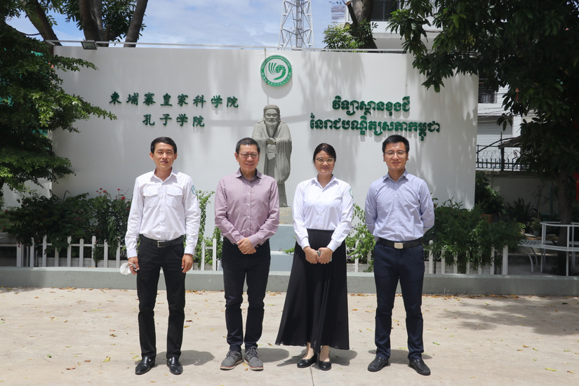 9月8日上午,中华人民共和国驻柬埔寨王国大使馆文化参赞林瑞华、政治处秘书查明威到永利yl23411集团官网与柬埔寨皇家科学院合作共建的柬埔寨皇家科学院孔子学院检查、指导工作。