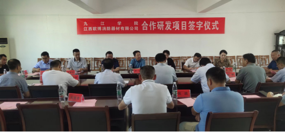 药生学院负责人、校科研处、都昌县及都昌镇相关职能部门负责人、江西欧博消防器材有限公司相关部门负责人、九江市真菌资源保育及应用重点实验室骨干成员参加了签约仪式。