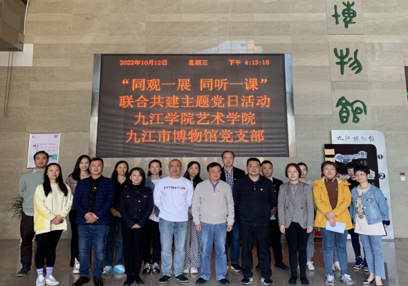 为持续推进党史学习教育,继承和发扬中华优秀传统文化,加强高校与地方文化共建,以更加奋发有为的精神状态迎接党的二十大胜利召开,10月12日下午,九江学院艺术学院教工第四党支部与九江市博物馆党支部联合开展“同观一展同听一课 喜迎党的二十大”主题党日活动。