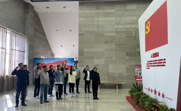 “我志愿加入中国共产党,拥护党的纲领,遵守党的章程,履行党员义务,执行党的决定……”面对鲜红的党旗,支部书记张栗娜带领党员高举右手,重温入党誓词。