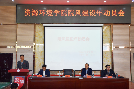 10月19日下午,资源环境学院在香远楼三楼报告厅召开院风建设年动员会。副校长陈春生出席活动并发表讲话,该学院党政领导、全体教师及各年级学生代表300余人参加了大会。