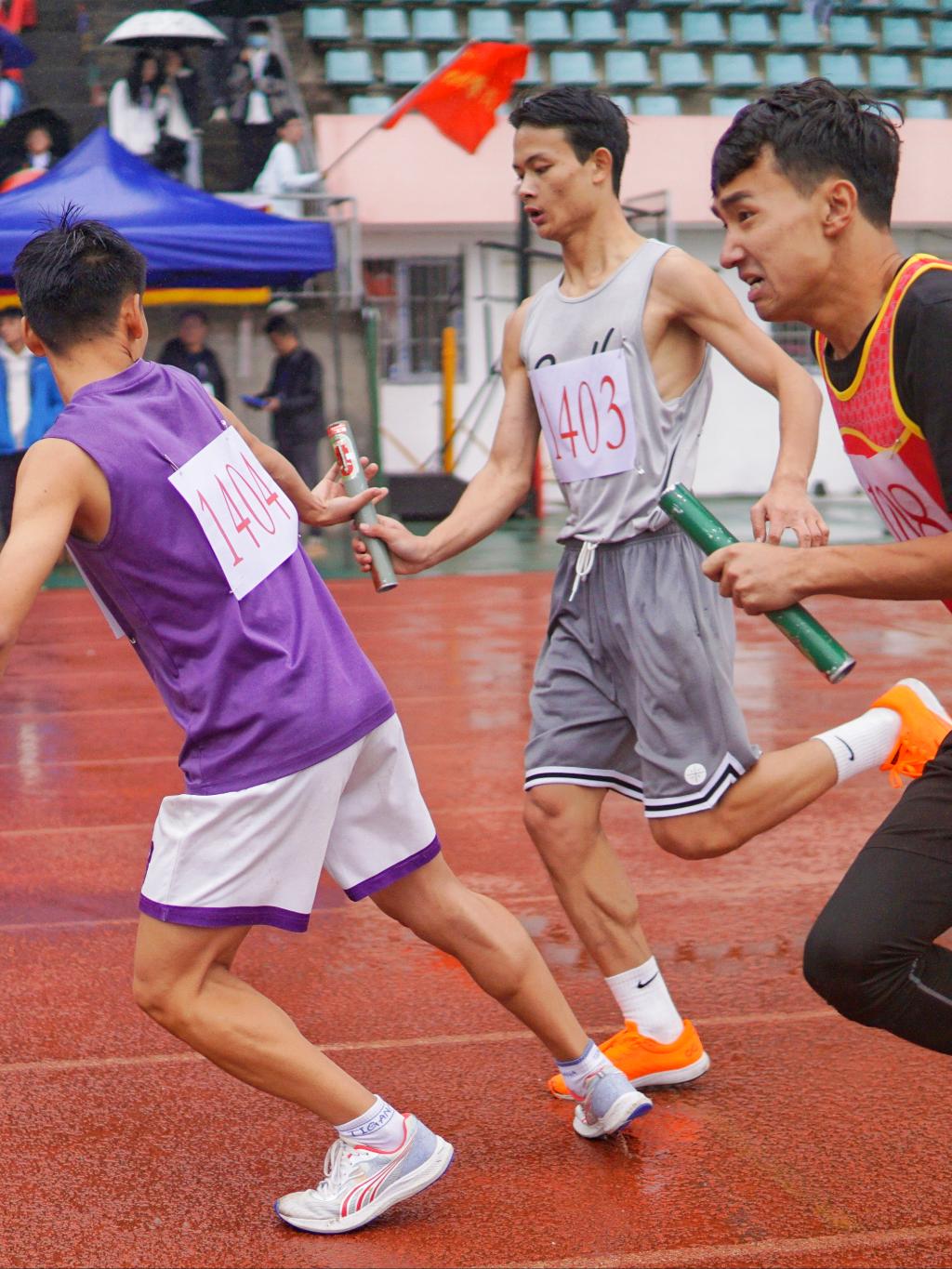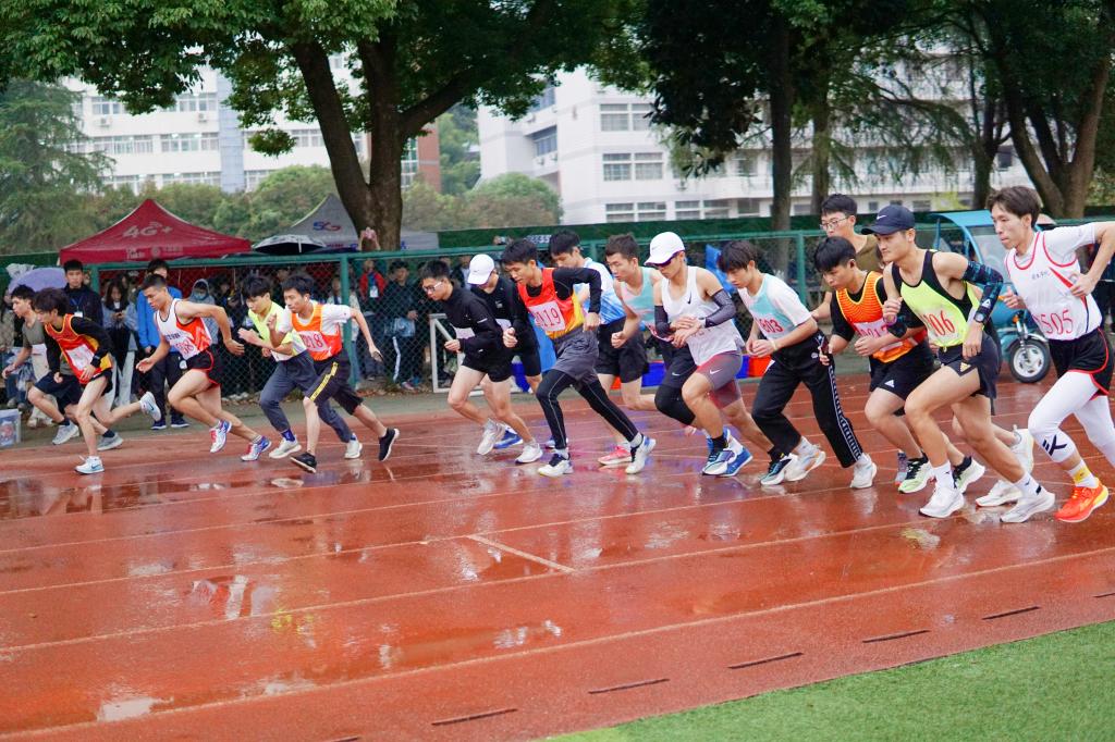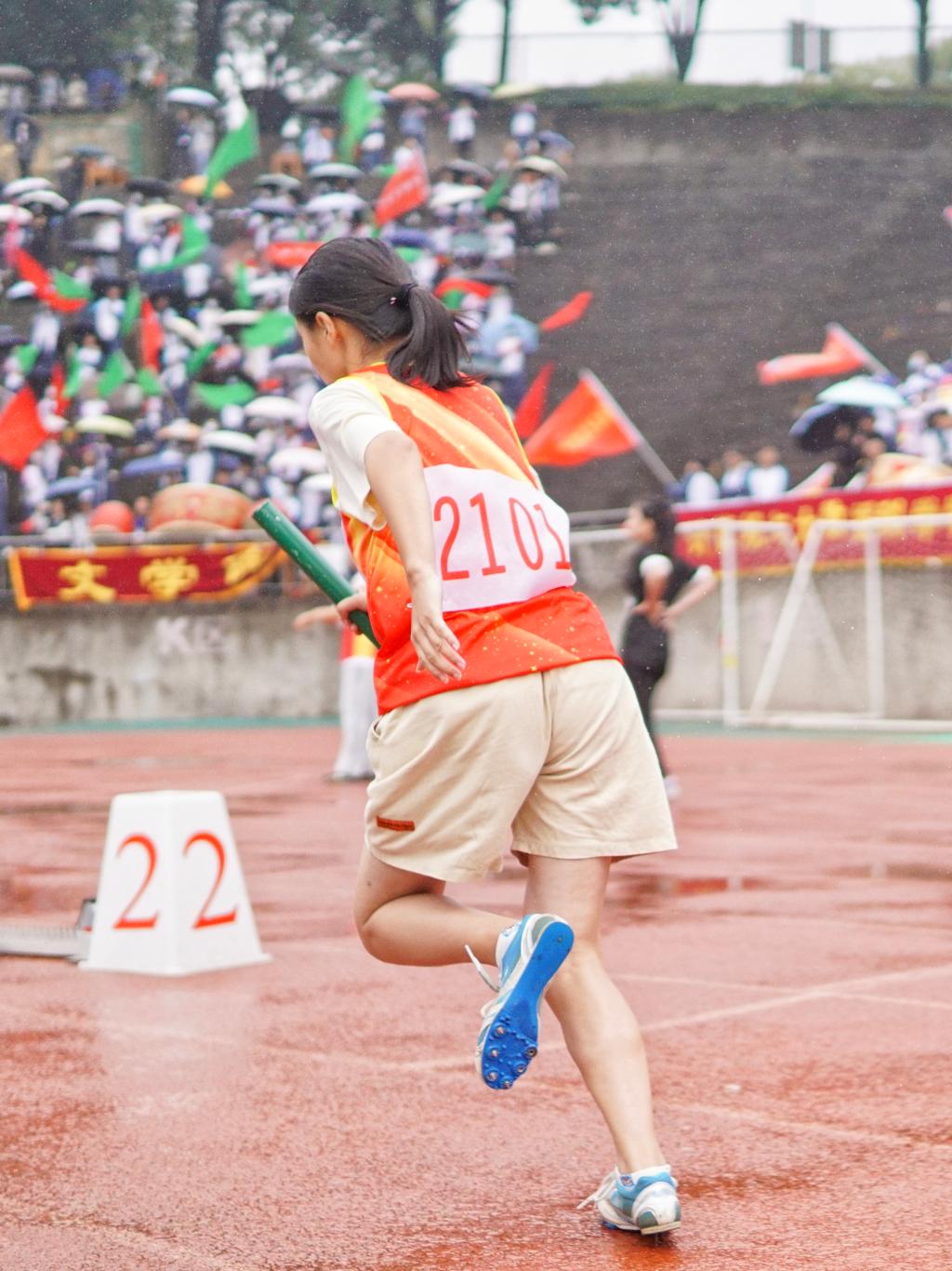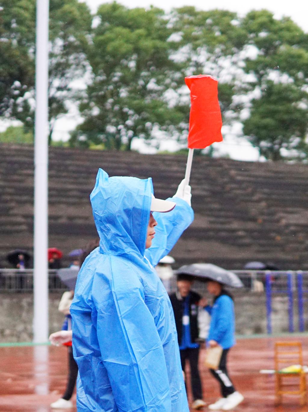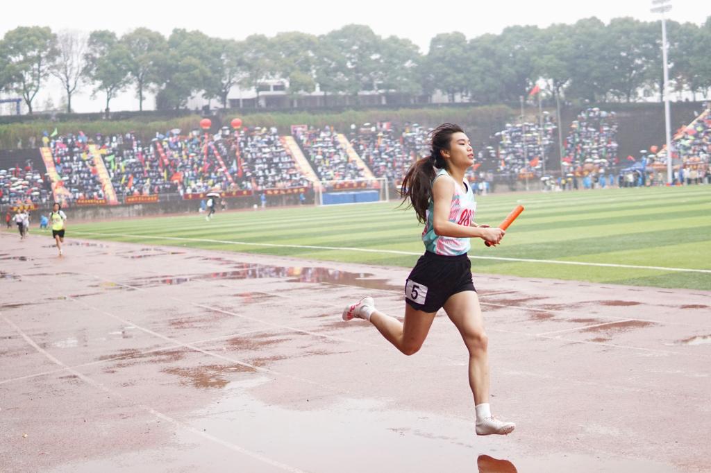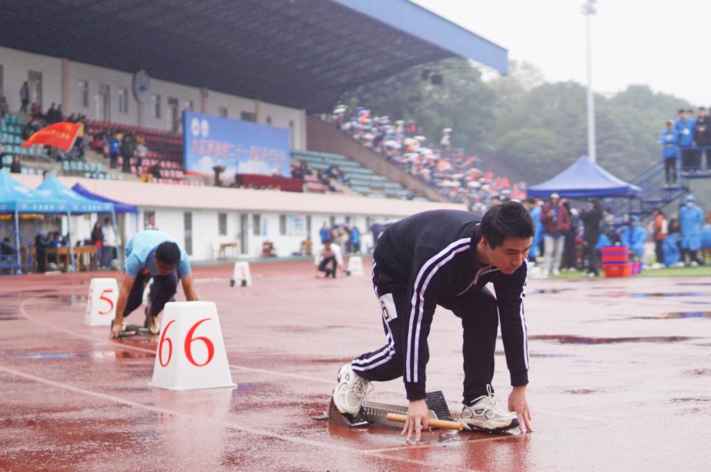 “没有人因为这场雨而放松,作为裁判,最重要的就是时刻保持细致严谨和公平公正的态度!”体育学院A2141班尹智文说道。“考察到在细雨对比赛影响较小的情况下,我们也会更加注意保障运动员的安全。”看台上,各个学院的观众也热情不减,击鼓呐喊,摇旗助威,掌声、欢呼声响彻整个田径场。