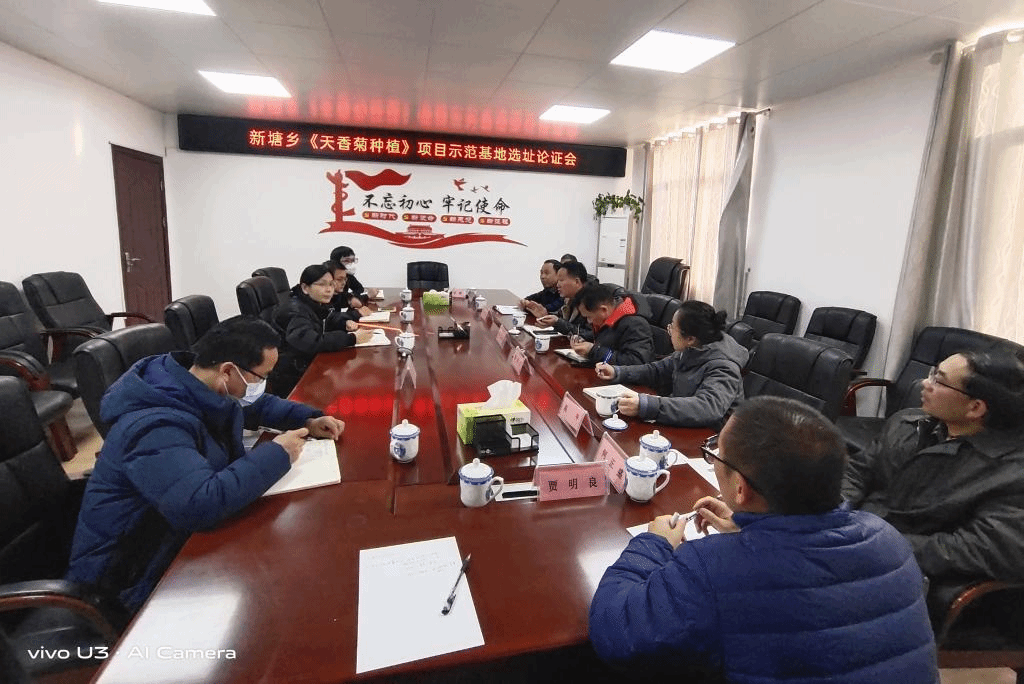 1月6日、7日下午,与会人员还一起赴柴桑区新合镇、新塘乡共同考察论证天香菊种植示范基地。
