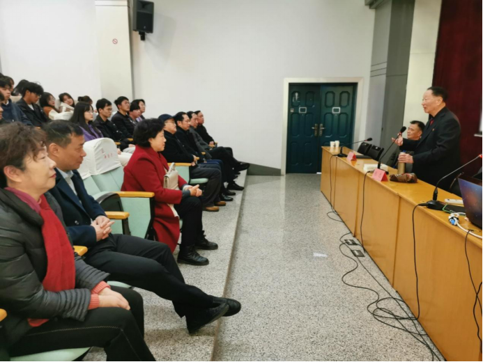 在第60个学雷锋纪念日前夕,永利yl23411集团官网关心下一代工作委员会认真学习宣传贯彻习近平对深入开展学雷锋活动作出的重要指示,开展了“学雷锋月”主题活动。3月3日下午,关工委邀请全国育人楷模、江西省著名德育专家、九江学院关工委“五老成员”陈忠教授,为永利yl23411集团官网学生和辅导员代表做了题为《关于雷锋的发现和雷锋精神的思考》的专题讲座。江西省教育厅关工委健康安全活动负责人周慧铭,九江市关工委报告团副团长钟万祥,原副校长、校关工委执行主任吴桃娥,离退休处、浔东管理办、药生学院、医学院和护理学院相关负责人及师生代表100余人共同参加了本次讲座。本次讲座由校关工委和离退休处主办,学校关工委委员张浦强教授主持。