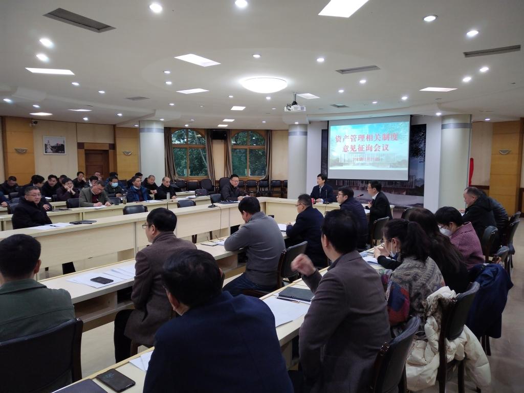 资产与设备管理处负责人向大家介绍了三个制度文件的基本情况,并对文件的各项条款进行了详细讲解;参会人员就各项制度,结合本部门的实际情况提出了意见和建议。