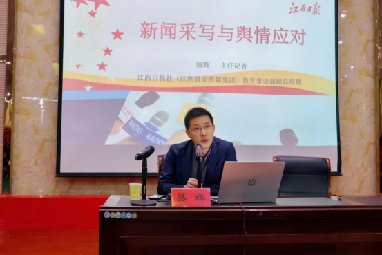 4月6日下午和7日下午,江西日报社主任记者骆辉、江西教育传媒集团融媒体中心陈艳伟、新华社江西分社摄影采访部主任周密应邀为培训班师生作讲座。三位专家分别以《新闻采写与舆情应对》《浅谈新闻报道思维和新闻摄影》《新媒体时代的摄影短视频报道》为题,结合江西高等教育实际和自身多年丰富的新闻从业经历,用一个个鲜活的案例、一幅幅精美的图片、一个个感人的故事,为大家深入阐释了新闻策划、采编、发布等新闻报道技巧和新闻图片、视频拍摄知识和技巧,具有很强的针对性和指导性,受到学员的广泛欢迎和高度评价。讲座结束后,专家还与在场师生进行互动,耐心细致答疑解惑,提出了许多颇具指导性和操作性的建议和方法,现场气氛热烈活跃。