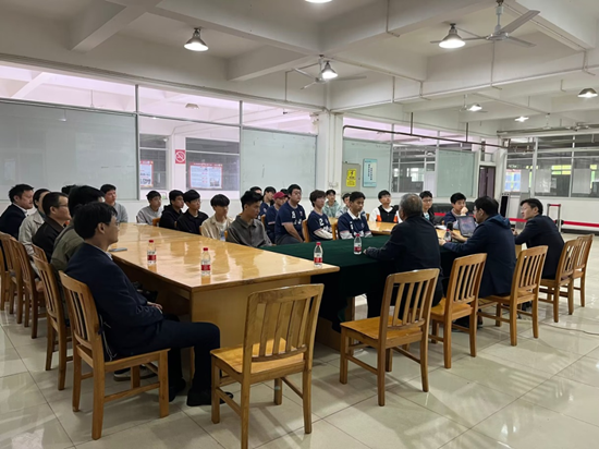 仪式结束后,黄瑞炉一行先后参观了电子信息工程学院教学楼、电子信息实验楼、实训中心,并在实训中心与“力源班”成员进行了座谈。