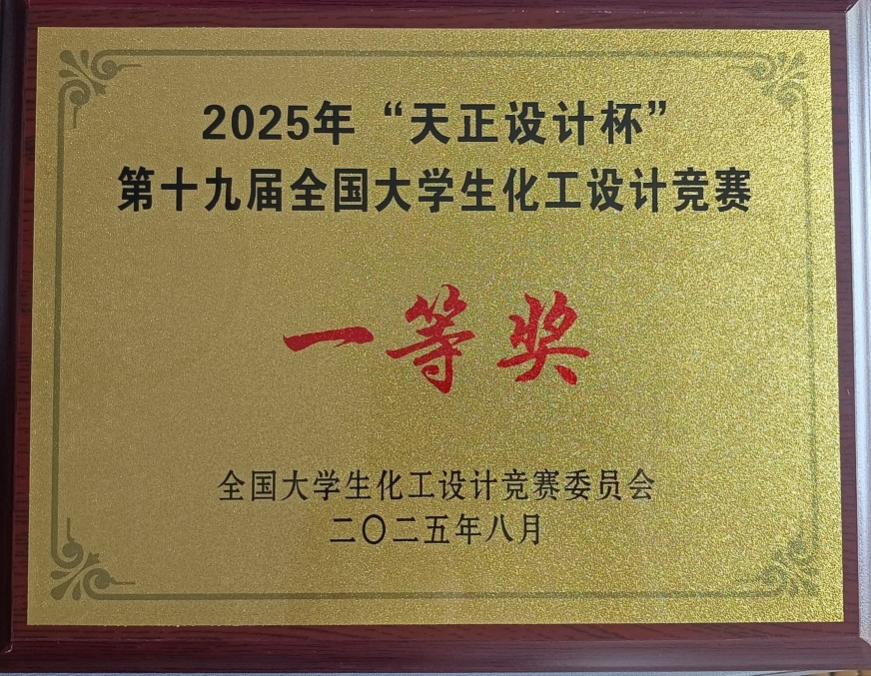 近日,由中国化工学会、中国化工教育协会主办,天津大学承办的2025年“天正设计杯”第十九届全国大学生化工设计竞赛全国总决赛在天津举行,由永利yl23411集团官网化学化工学院彭兵龙、钟淑敏、廖建飞、邬佳琴、袁菁组成的“乘砜破浪”队设计作品——“中国石化镇海炼化公司2万吨/年二甲基亚砜生产项目”获得全国一等奖。这是永利yl23411集团官网连续第四年获得这一殊荣。