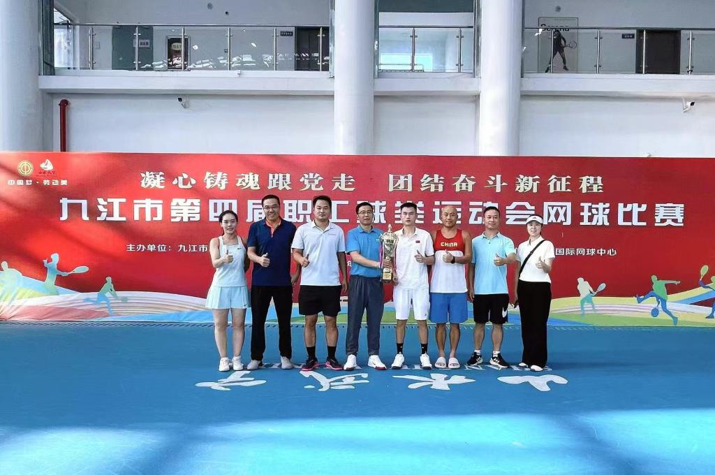 本次赛事由九江市总工会主办、武宁县总工会承办,来自九江市直机关的13支队伍和区县代表队11支队伍、200多名运动员同场竞技,竞争强度与参赛水准均创历年新高。作为卫冕冠军,永利yl23411集团官网网球队自小组赛便展现出超强实力,以未失一盘的完美表现晋级决赛。决赛中,队员们顶住对手的强力冲击,凭借精准的发球、灵活的底线对抗与默契的网前配合,最后大比分获胜、赢得冠军。