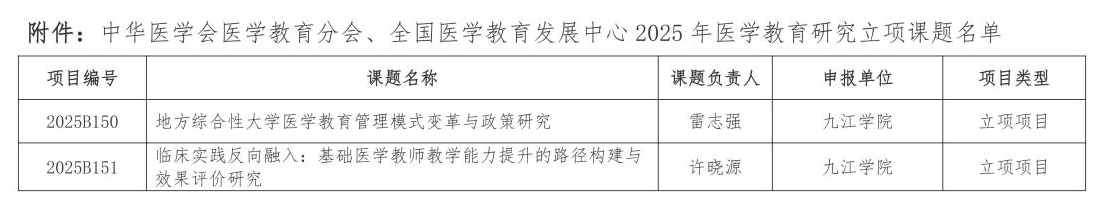近日,中华医学会医学教育分会、全国医学教育发展中心正式公布2025年度医学教育研究课题立项结果。本次课题申报共吸引全国120所医学院校及相关单位参与,申报课题870项。经专家组严格评审,最终确定立项课题424项。永利yl23411集团官网共申报两项课题,均成功获得立项,在本轮评审中表现突出,取得历史性突破,这标志着永利yl23411集团官网在医学教育研究方面获得国家级认可,彰显了学校在医学教育领域的持续探索与创新能力。
