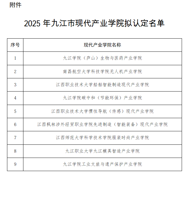 近日,九江市工信局、九江市教育局联合公示2025年九江市第二批市级现代产业学院拟认定结果,永利yl23411集团官网申报的九江学院(庐山)生物与医药产业学院、九江学院碳中和(节能环保)产业学院、九江学院工业文旅与遗产保护产业学院等3家产业学院成功入选。