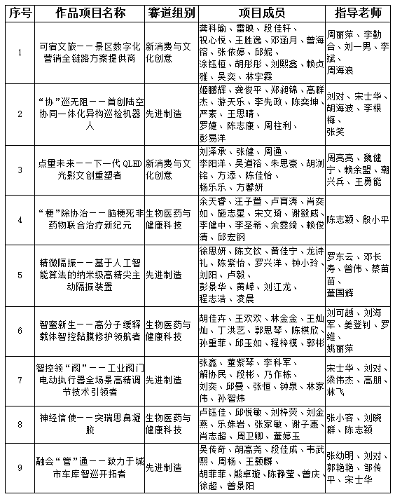 根据《关于举办第十五届“挑战杯”江西省大学生创业计划竞赛的通知》、《关于举办第十五届“挑战杯”大学生创业计划竞赛九江学院选拔赛的通知》等相关文件要求,经项目申报、学院推荐、学校评审等环节,现拟共推荐9项作品参加省级主体赛事。