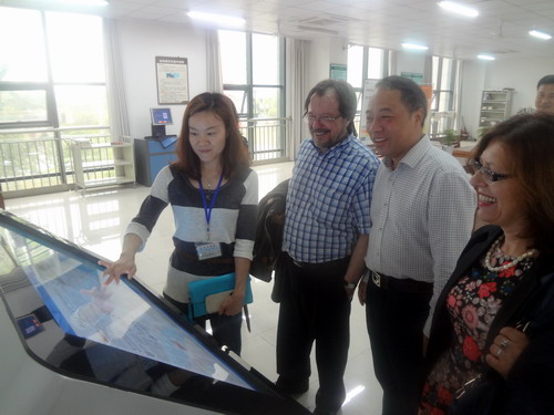 甘校长首先向法国访客介绍了八里湖校区利用社会公共体育资源的办学特色,既提高了体育教学质量,又更好的利用了社会资源。在甘校长的引领下,法国访客先后参观了校区图书馆、室内体育馆、学术报告厅、学生食堂、学生公寓等场所,期间甘校长全程用法语向客人进行了详细的介绍。