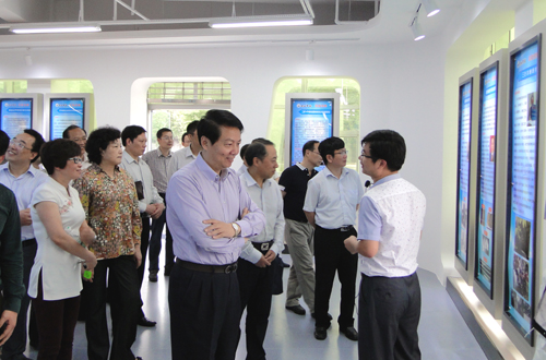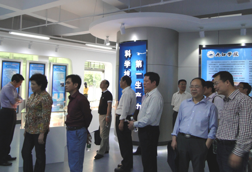 5月18日,永利yl23411集团官网校庆系列活动之一、九江学院科研及专利成果展厅正式开放。下午三点,校领导郑翔、甘筱青、吴桃娥、纪岗昌、王万山、陶春元、杨焱林、魏立平、杨耀防等来到展厅,兴致勃勃地参观了科研及专利展。