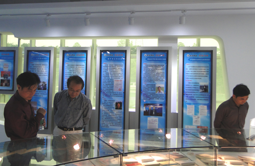 在热烈的掌声中,党委书记郑翔和校长甘筱青为展厅揭牌,副校长吴桃娥宣布“九江学院科研及专利成果展厅正式开放”,副校长纪岗昌主持揭牌仪式。各二级学院院长以及有关职能部门负责人等参加了揭牌仪式,并到展厅进行了参观。
