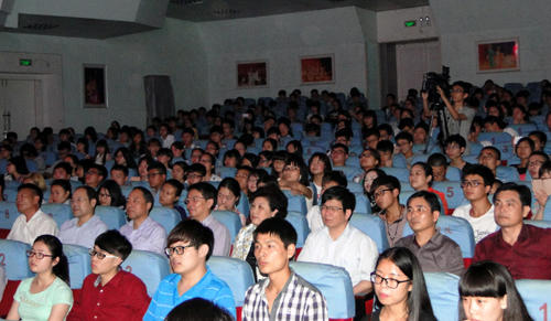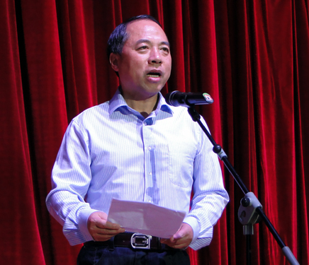 在热烈的掌声中,校长甘筱青致辞。他对获奖的集体与个人表示了诚挚的祝贺!他说学校开展三大特色教育,其中之一是国学素养教育。学校秉着传承国学,振兴国学的精神,设立“国学传承奖”并把其列入学校常设奖项,于每年的校庆日颁发。他希望全体师生传承白鹿洞书院和濂溪书院传统,守护大学精神家园,推进文化传承创新,谱写学校新的华章。