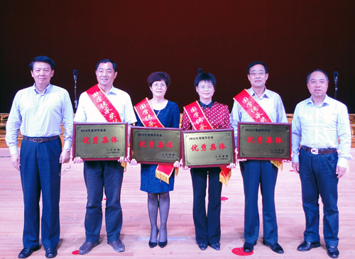 颁奖典礼现场,校党委书记郑翔和校长甘筱青为获得2015年国学传承优秀集体的外国语学院、土建学院、文传学院和政法学院颁发了奖牌。副校长吴桃娥、纪岗昌、王万山为获得国学风采奖的14位获奖代表颁发了荣誉证书。副校长杨焱林、校纪委书记魏立平、副校长杨耀防为获得国学学习奖的5位获奖代表颁发了荣誉证书。