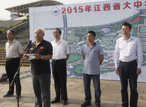 江西省学生体协秘书长揭宁元在致辞中,代表主办方向九江学院为本届比赛给予的强有力的支持表示衷心的感谢。向多年来给予江西定向越野运动大力支持、做出重要贡献的单位和个人表示衷心的感谢。他指出,定向越野既是一项智力测试,又是体能的竞赛,相信同学们经过系统的培训,今天能一展雄风,争取最好的成绩。