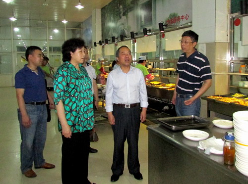 随着气温一天天的提升,五月火红的校园也将迎来本学期的安全考试月。5月29日上午,甘筱青校长和吴桃娥副校长一起来到后勤管理处检查食堂工作。后勤管理处处长姜东升同志汇报了后勤管理处近期的工作。在听取了汇报后,甘校长一行来到了学生三食堂现场巡查。