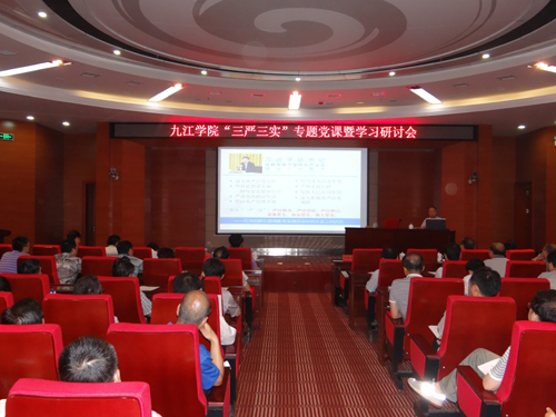 6月11日下午,学校“三严三实”专题党课暨学习研讨会在逸夫图书馆报告厅隆重举行。校党委书记郑翔主持党课暨学习研讨会,校长甘筱青为全校副处级以上干部上“三严三实”专题党课。副校长吴桃娥、王万山、陶春元、杨焱林、魏立平、杨耀防与全校副处级以上干部一起参加了会议。