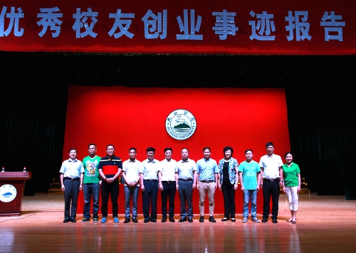 为进一步加强创新创业教育工作,激励广大在校大学生努力学习,励志成才,6月26日下午,在学校大礼堂隆重举行了优秀校友创业事迹报告会。校长甘筱青出席并讲话。副校长吴桃娥主持报告会。来自各二级学院1000余名师生代表,聆听了6位优秀校友创业事迹报告。