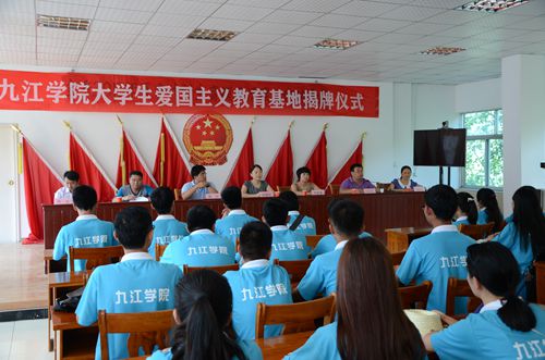 仪式上,校团委书记闫来英介绍了此次在武宁开展“青春三下乡 热血中国梦”暑期实践活动和大学生爱国主义教育基地建设的基本情况。要求同学们用好老苏区武宁的独有红色文化资源,以开展抗战胜利70周年系列活动为契机进一步推进大学生思想政治教育工作。