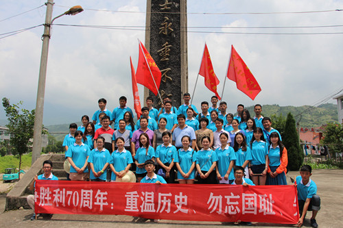 仪式结束后,永利yl23411集团官网“青春三下乡”之抗战专项服务分队在上汤乡革命烈士纪念碑前庄严地重温抗战历史,缅怀先烈,向烈士纪念碑鞠躬敬礼。