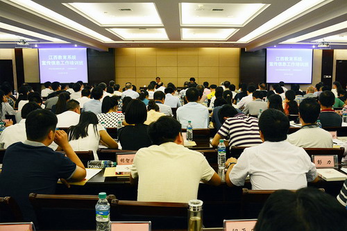 7月2日—3日,省教育厅在南昌航空大学举办全省教育系统新闻宣传工作培训班,集中培训全省高校宣传信息业务骨干,研究部署2015年全省高校宣传思想工作任务。省委教育工委书记黄小华出席并作《贯彻落实 落实中办〔2014〕59号和赣办〔2015〕1号文件精神 开创全省高校宣传思想工作新局面》专题讲座,省教育厅巡视员周金堂主持。全省高校分管宣传工作的校领导、党委宣传部长及宣传信息员,各设区市教育局、省直管县教育局宣传信息员,委厅机关各处室、直属各单位宣传信息员200余人参加。永利yl23411集团官网副校长杨耀防出席会议,党委宣传部副部长何桂林,党委宣传部文明办副主任吴彭年一同参加了本次培训活动。